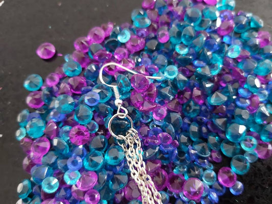 Lightning bolt earrings. Pink, purple and blue .triple drop