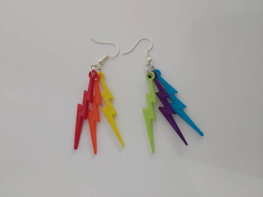 Lightning bolt earrings. Various pride flag colours.