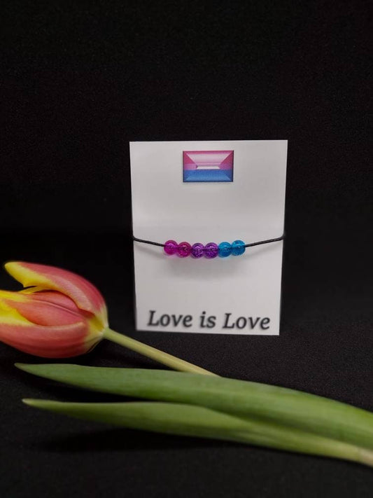 Pansexual Bracelet Gift. Adjustable Rainbow. Glass Beads