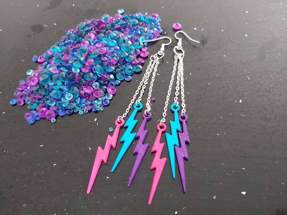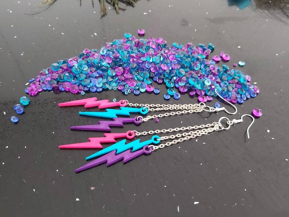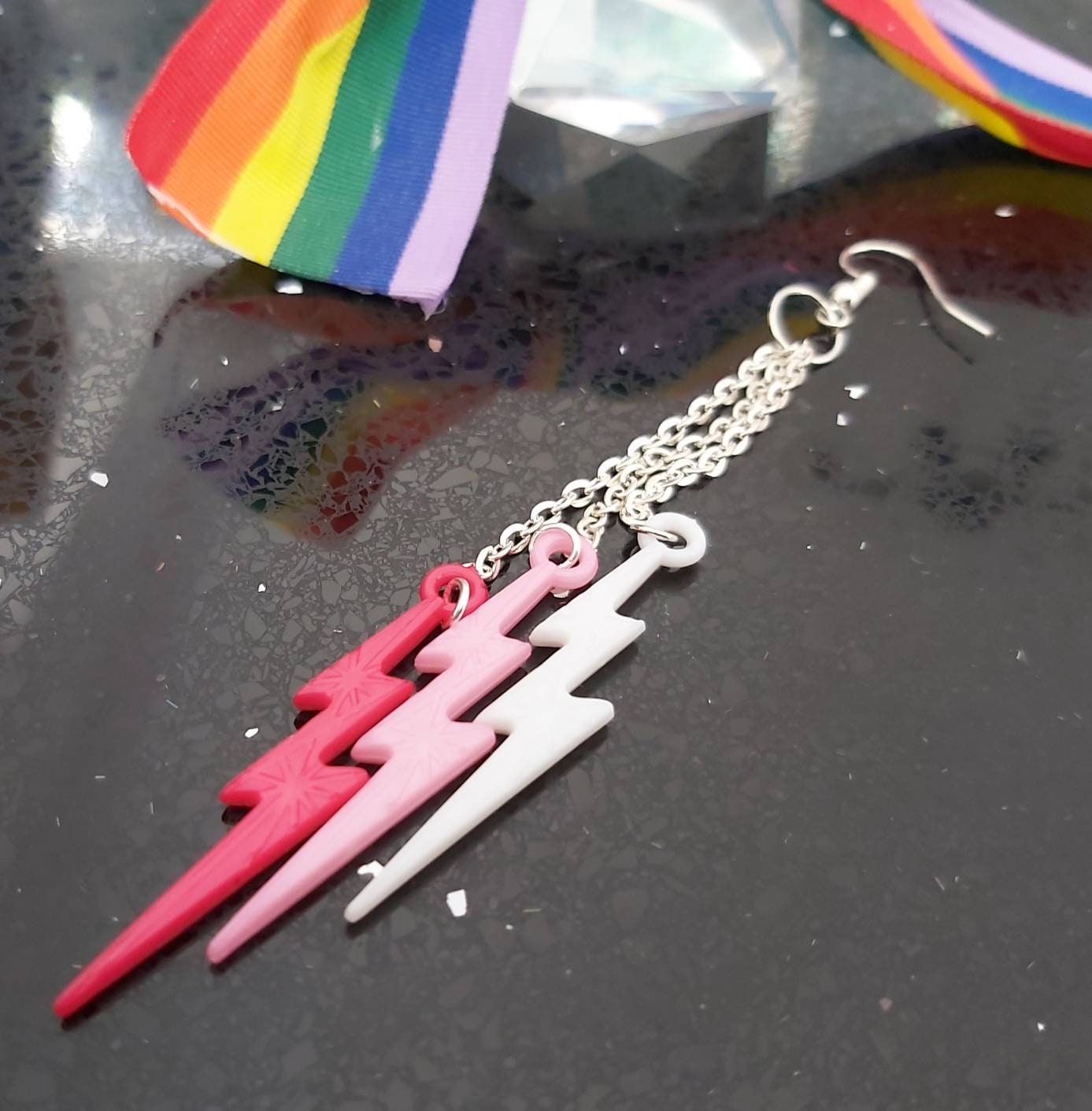 Bisexual earrings ,pride flag colours. Pink, purple and blue .Triple drop Lightning bolt.