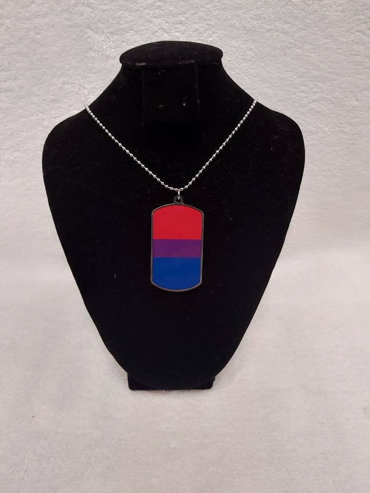 Genderfluid Dog Tag Necklace on an approximately 27inch chain can be cut down to shorten if prefered.