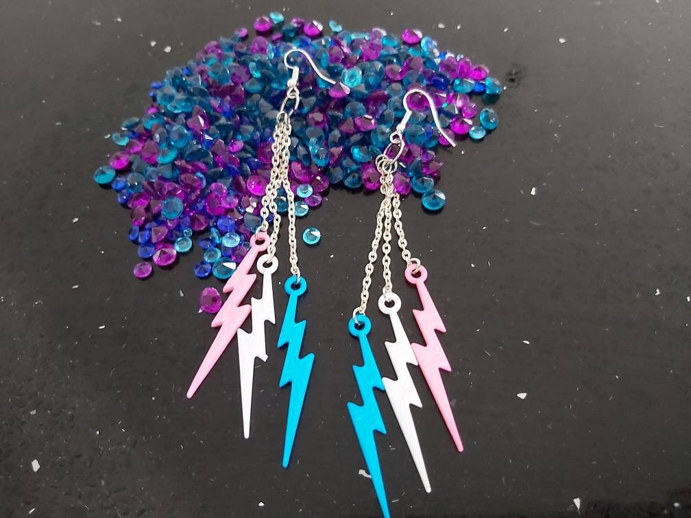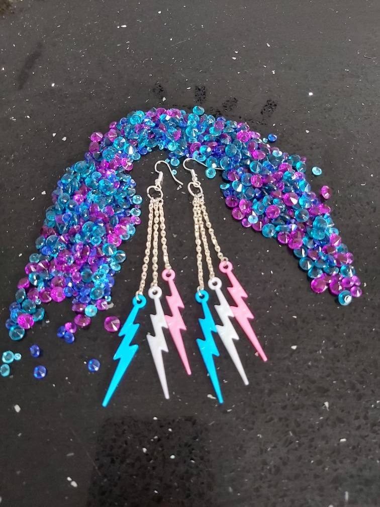 Lightning bolt earrings. Pink, purple and blue .triple drop