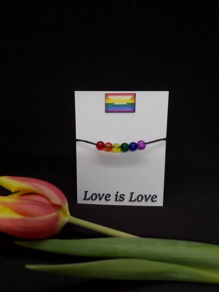 Pansexual Bracelet Gift. Adjustable Rainbow. Glass Beads