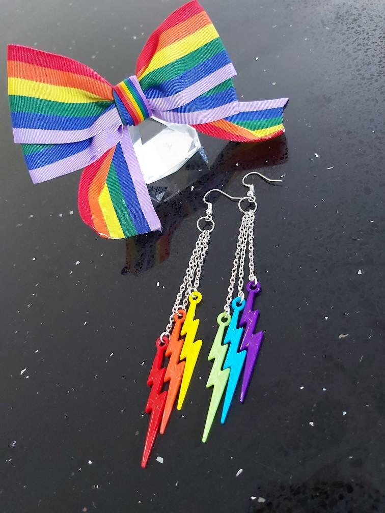 Pansexual earrings ,pride flag colours. Pink, yellow and blue .Triple drop Lightning bolt.